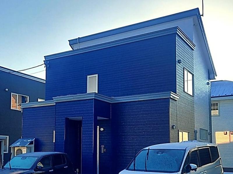 外壁は黒系+グレー系から紺系+グレー系に、無機塗料で塗装いたしました