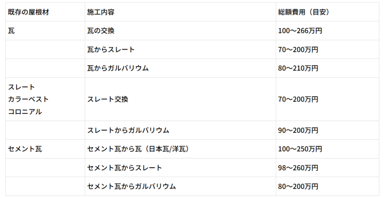 なお、葺き替えの費用相場は以下のとおりです。同じ屋根材を採用するのか、