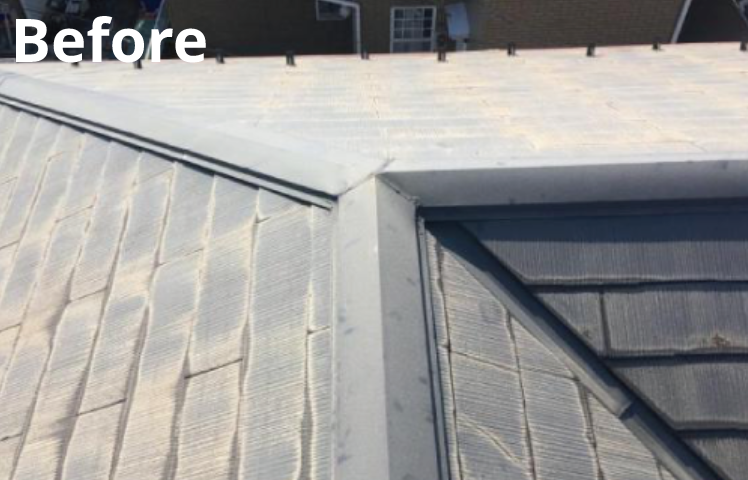 台風の影響で屋根の棟部分が剥がれてしまい、ご相談いただきました。屋根診断を行ったところ、棟を止めている釘なども経年劣化によって浮いている状態で、屋根自体の傷みと色褪せが目立っていたのでセネターをカバー工法にて施工させていただきました。台風の影響で急な工事でしたが、今後何か不安なことがございましたらいつでもご連絡ください。
